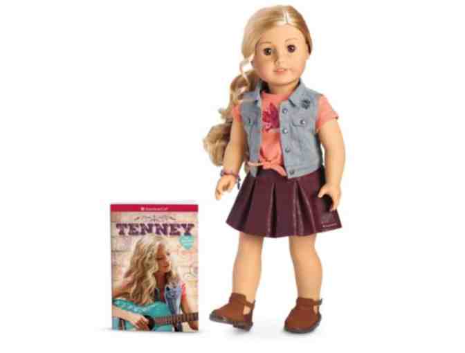The 18" Tenney Grant doll has light brown eyes that open and close, freckles on her nose, and long, curly blond hair. Tenney’s unique hand positioning helps her hold her guitar, banjo, and pick! She arrives in a graphic tee, denim vest, faux-leather skirt, and ankle boots. Also included are a woven bracelet and the Tenney paperback book.