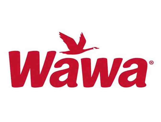 Gift basket contains a $25 Wawa gift card, metal coffee mug, tshirt, blanket, and coupons.