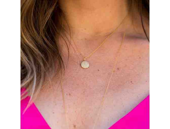 Charming gold plated necklace with a 1cm cubic zirconia crusted disc is perfect for layering!