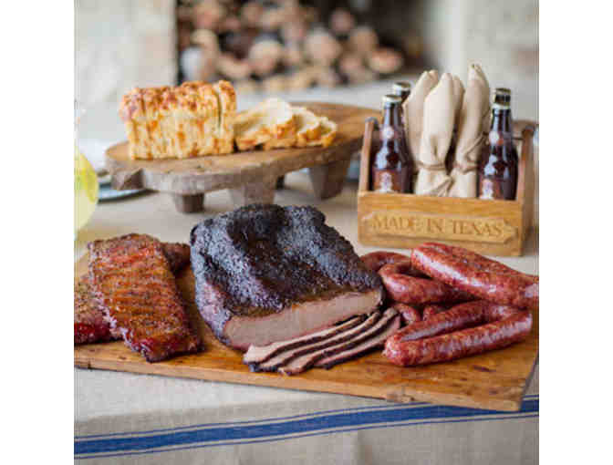 Includes: 1 whole brisket, 2 slabs of pork ribs, 2 links of Czech Sausage, 2 links of Jalapeño Pork Sausage, two 24.5 oz. bottles of Goode's BBQ sauce, 2 loaves of our Homemade Jalapeño Cheese Bread, and one Brazos Bottom Pecan Pie in a pine gift box. (Feeds 18-20)
