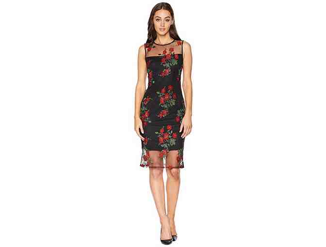 Fall in love with this Calvin Klein Embroidered Flower Lace Sheath Dress.