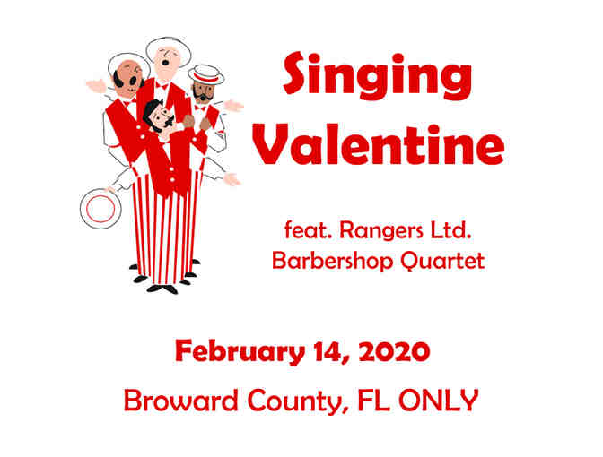 The Singing Valentine can be be delivered anywhere Broward County on February 14, 2020. Winning bidder will be provided with contact information to coordinate arrangements.