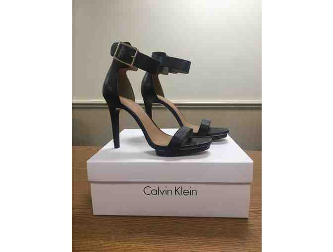 Calvin Klein Women's - Vable Lizard/Cow Silk Open Toe Ankle Strap in black - 8.5 M