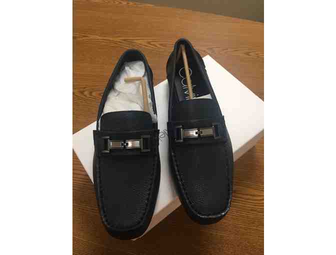 - STYLE AND DESIGN: Classic staple to any man's wardrobe, this driver is crafted with soft leather and finished with Calvin Klein branded name plate hardware. Embrace your dress casual weekend or office attire with this loafer