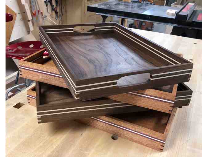 Your guests will be talking about this one! These handcrafted serving trays are made with multi-layered wood by local craftsman, David Speert. Bid now and yours will be customed built based on your wood and size preferences.