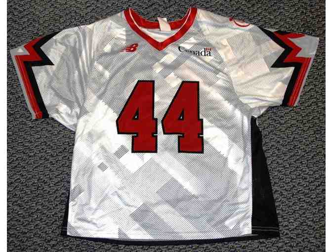 The bearer of this item will receive a New Balance Team Canada U19 Men's Field Lacrosse game jersey #44. All-star lacrosse player Tre Leclaire wore #44 for the Team Canada U19 Men's Field Lacrosse team that won silver. This is a size Large jersey.