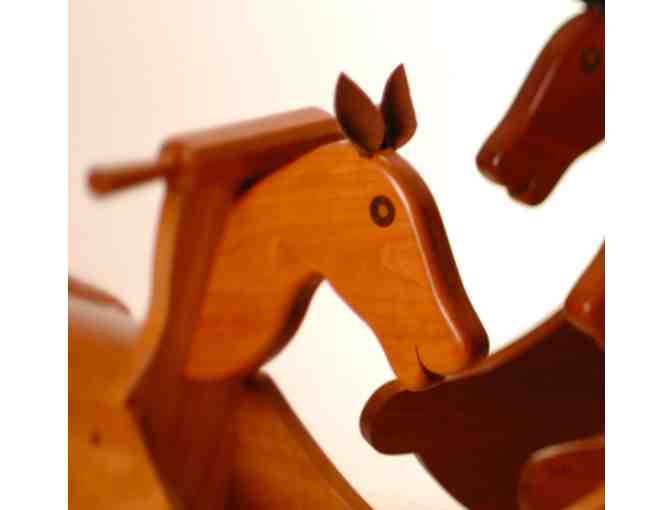 The Huston & Company Rocking Horse is an immediate heirloom, built to last for many generations. Built of solid hardwood, with leather ears. Shown in cherry with wenge and maple eyes. The first Huston Rocking Horse was built by Bill Huston when his first son, Justin, was born.
