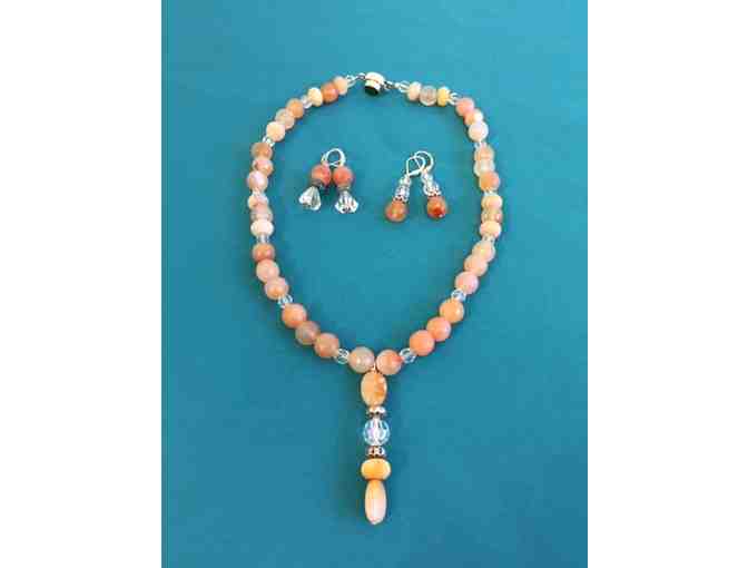 Add an elegant touch to any outfit with this silver, agate stone and crystal necklace and earrings set from Karen Migdail.