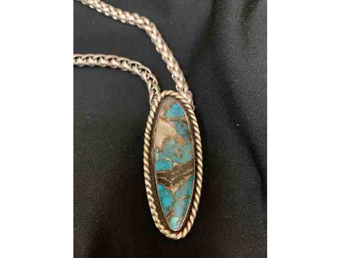 Hand crafted by local silversmith, Ron Fischler.  This is stunning piece created with a southwestern theme!  Add a little flare to your style with this one....or perfect for that special lady on your holiday list!