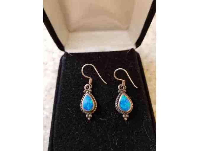 Stunning silver and turquoise pierced earrings. Approximately 3/4 inch long