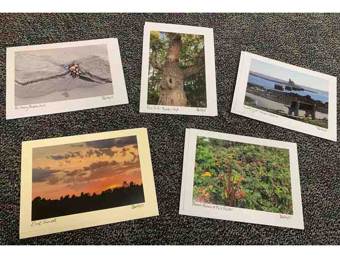 If you love this Kittery, you will adore this set of greeting cards! The cards are handmade by Betty Olivolo of Kittery and each one features one of her photographs taken locally. The pictures are stunning and the cards are great for any occassion. Each card comes with an envelope and is blank on the inside. Bid now for your set of 5!