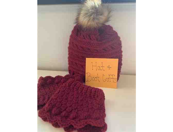 Win this beautiful, handmade winter hat and matching boot cuffs. These items are perfect for a bright winter day!