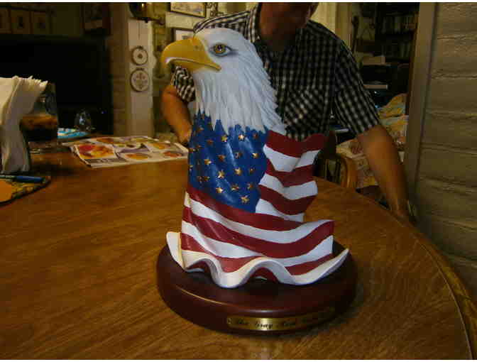 This dramatic piece is 8" high and 6 1//2" across the base. It is from the Gray Rock Collection. and a perfect way to express your love for America!