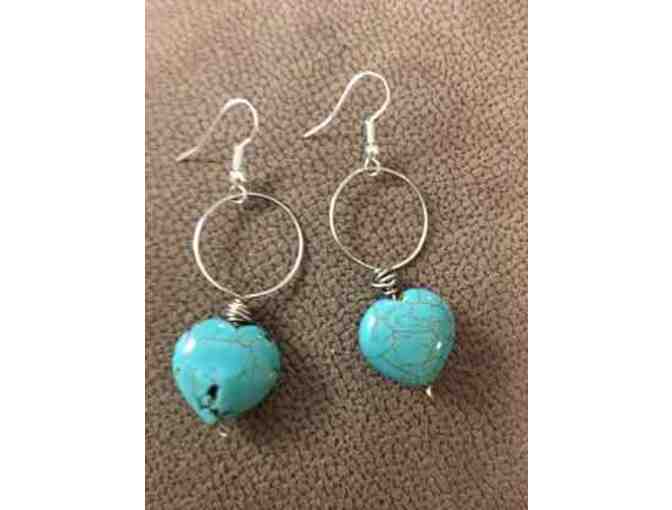 Pretty handmade Turquoise earrings. Silvertone. Not sterling silver