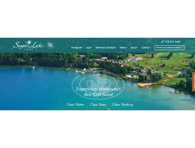 This is the perfect little getaway! This package includes a 2-night stay and play package for 2 people at Beautiful Sugar Lake Lodge Resort in Cohasset, MN.