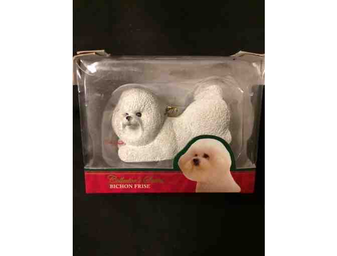 Sweet little Bichon in a play bow. New in box ready to hang. Ornament is 3 inches long