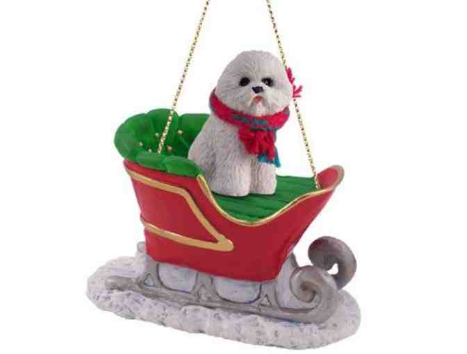• Sleigh has a felt bottom so that it may be placed on a desk or shelf. • Scarf can be removed • Gold hanging rope can be easily removed. • Hand Painted Stone Resin. • Approximately 2.75" tall x 3.5" wide x 1.5" deep.