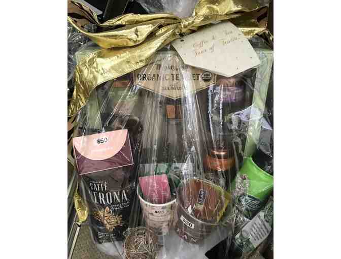 Sip your way through Tustin’s coffee and tea establishments! Includes gift cards to three different local coffee houses plus some hot beverages and accessories for home.