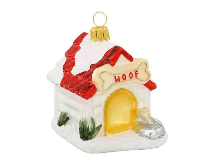 Dog lovers will be pleased with this dog-gone cute ornament! Decorated with a bone that reads WOOF, our 2½" tall glass doghouse is skillfully mouth-blown in Poland with a variety of shimmering glazes and sparkling glitter accents. No bones about it this dazzling keepsake is paws-atively adorable! Donated for a wonderful cause.
