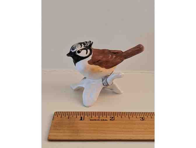 Ceramic figurine of a tufted titmouse bird. By Goebel, Germany.