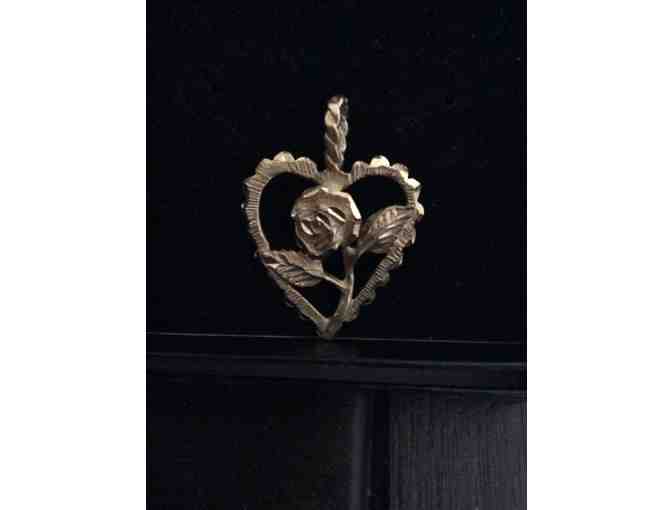 14K Gold Heart Pendant with Rose
