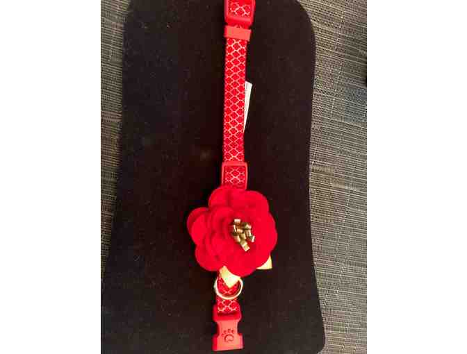 Holiday Dog Collar / Medium red & gold flower