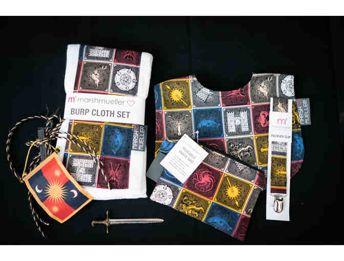Game of Thrones Baby Set: Includes Bib, Burp cloth set, Snack bag, Miniature Oathkeeper collectible sword.