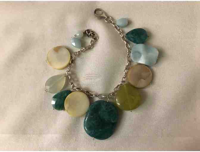 Cream/blue/green dangle bracelet