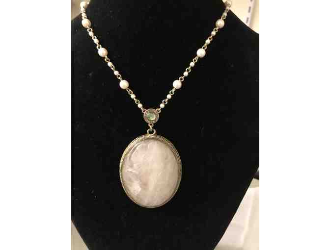 Carolee 34" necklace of beautiful rose quartz and pearl and gold-tone necklace.
