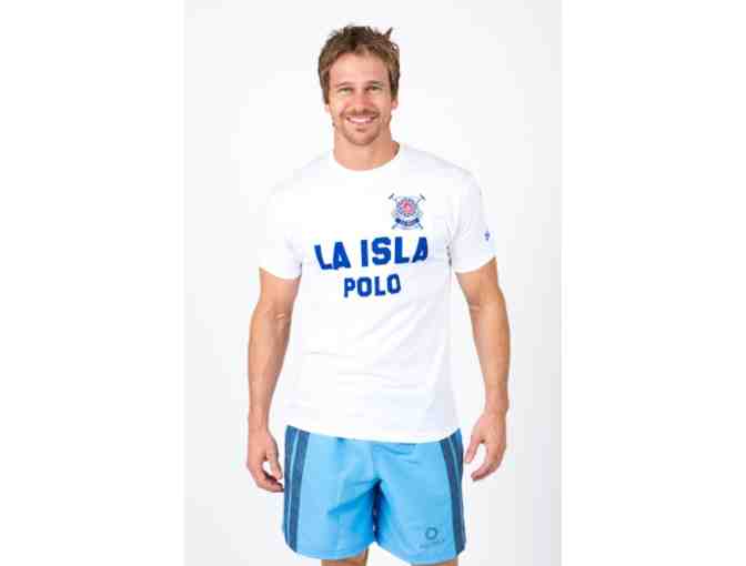 Represent team LA ISLA in these vintage polo T shirts for men. With its navy writing, red number 1 on the back, and polo logo on the upper left corner, you can’t go wrong with this classic. You’ll love the soft white cotton and casual fit.