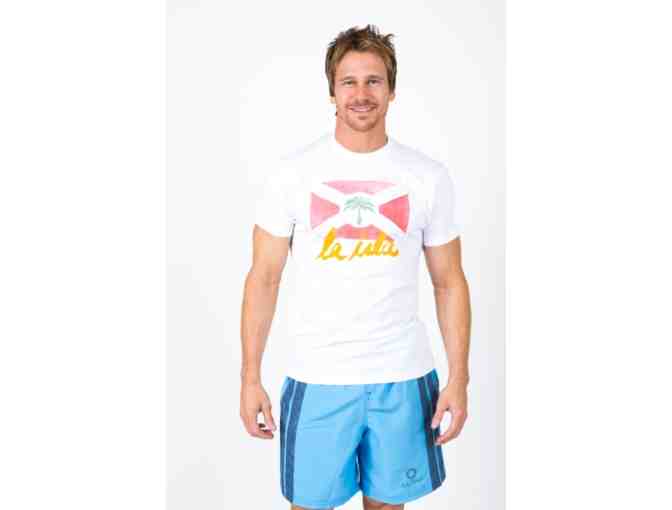 The LA ISLA Nation men’s vintage T shirts with their red flag, green palm tree, orange cursive La Isla writing, and our favorite La Isla native sun logo on the back bottom left, is the perfect everyday tee. Downtown, at the beach, or on a summertime road trip, you’ll love the soft white fabric and casual fit.