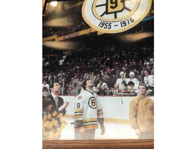 Own a piece Boston Bruins history! Hall of Famer Johnny Bucyk (Bruins legend1955-1978) Autographed/Framed Picture of him hoisting his # to the Rafters in the Garden as he retires. No certificate of authority included