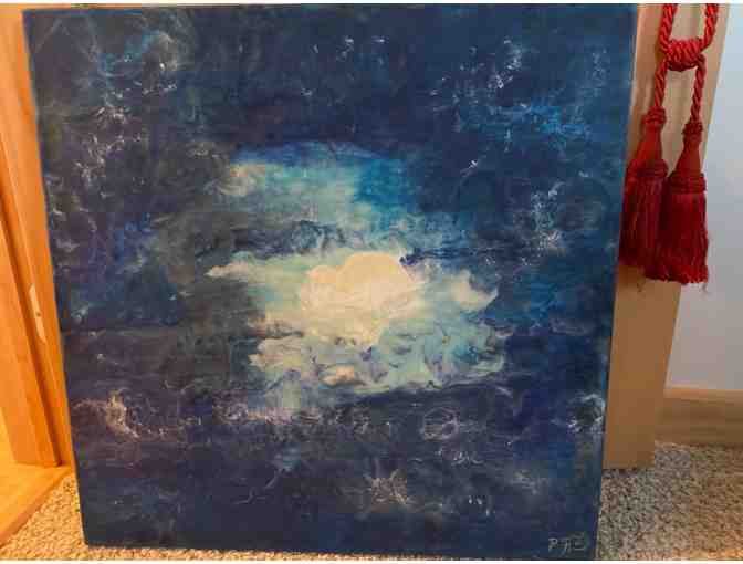 This art piece titled, "Heartfelt Moon of the Guru" by Dawn Gaskill measures a total size of 2 x 2 ft. This beautiful piece was donated by a Crestone devotee.