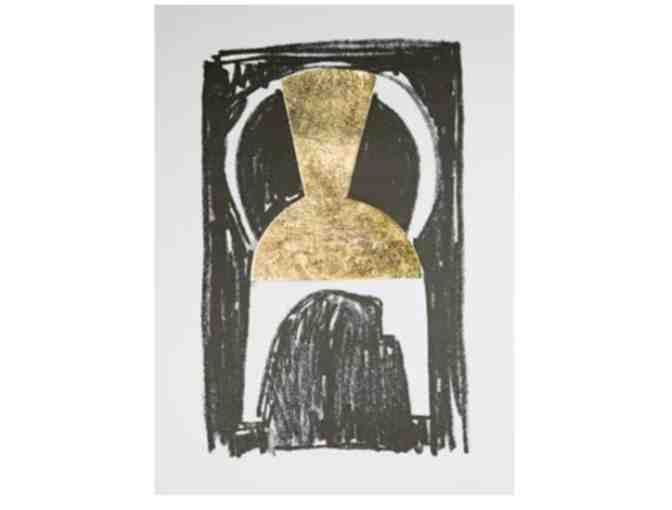 Her Chair is an original gold leaf and black mono print that is framed by artist, Rochelle Udell.