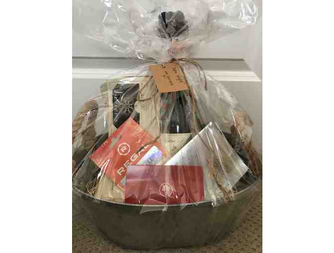 Enjoy a bottle of wine before you leave for your big night with a bottle of Pinot noir from Samuel Robert Winery (2018 Vintage) and a box of See’s Candies