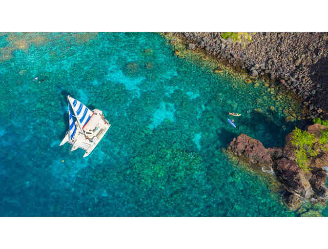 The Hokulani sets sail from Keauhou Bay at 8:30 am. As we sail down the Kona Coast, enjoy a tropical-style breakfast while you keep an eye out for Humpback Whales, from Dec-April, and Hawaiian Spinner Dolphins, year-round. Approximately 45-minutes later, we’ll enter Historic Kealakekua Bay, where you’ll spot the World Famous Captain Cook Monument. “Hawaii the Big Island Revealed” guidebook says, “snorkeling in Kealakekua Bay near the monument is perhaps the best you will find anywhere in the state.” Bring an underwater camera to capture the colorful schools of fish and sea life swimming through the vibrant reef and ancient lava flows. Enjoy the view over lunch as we exit the bay and set sail for “Red Hill” (weather permitting). Snorkeling in the Red Hill area gives you another perspective, with schools of sea life swimming through underwater lava archways and lava tubes. Then it’s back to Keauhou Bay, arriving by approximately 1 pm. While your Hawaii snorkel adventure has come to an end, your memories will last a lifetime.