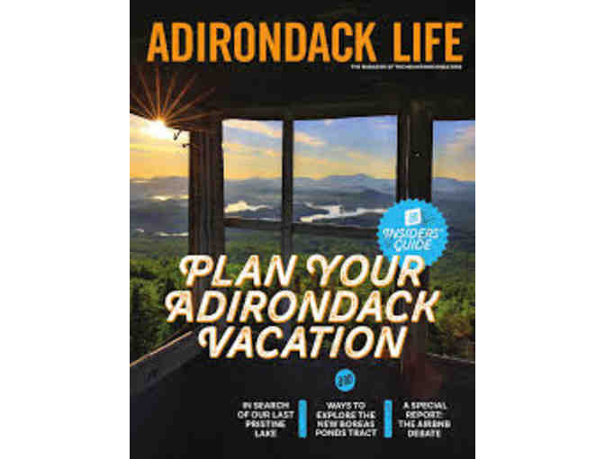 A one-year subscription to Adirondack Life, based in Jay, New York, established in 1969. The magazine that defines this special place reaches hundreds of thousands of readers in all 50 states with its eight issues per year containing superb photography, thought-provoking features, articles on how to and where to find the best of the region for outdoor recreation, distinctive home goods, energy efficient innovations, dining, lodging and culture.