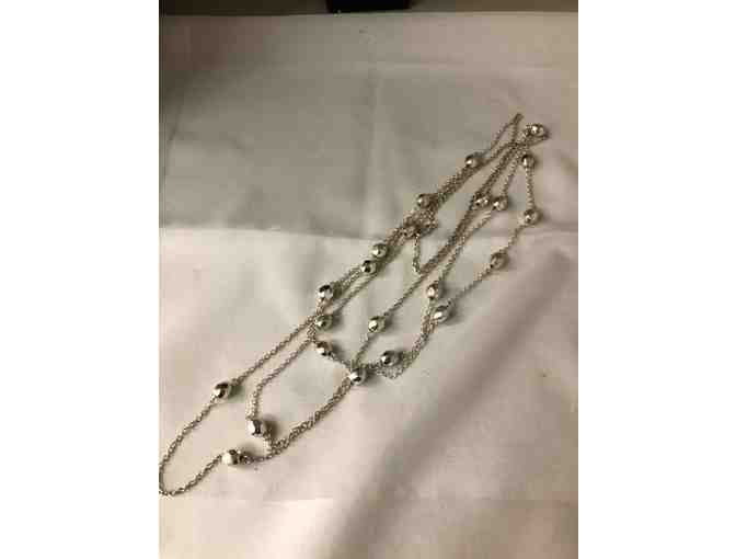 Lovely Silver Toned Beaded Necklace - minimun 28" to 34" in length