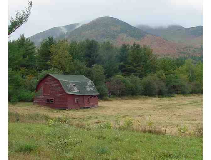 Framed photograph ofthe Keene Valley Red Barn by Barbara Peduzzi. With the frame it is 12" high and 16" wide, the photo itself is 8 x 10".