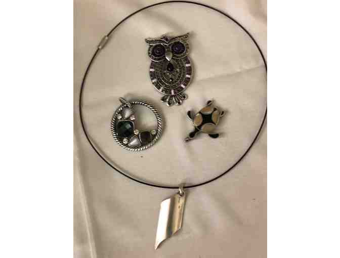 Four Pendants w black choker necklace