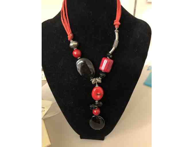 Beautiful statement piece of leather and bead necklace in Red/Black