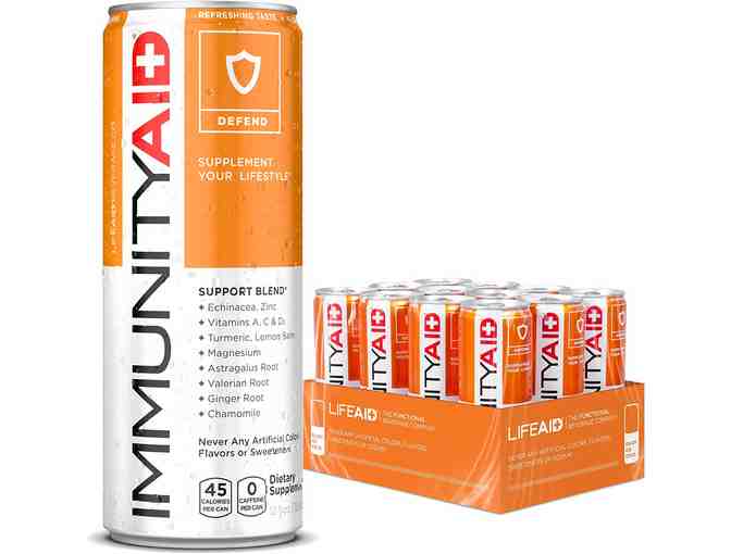 IMMUNITYAID was designed to help your immune system do its magic. Your immune system is a well-oiled machine when it comes to naturally fighting off toxins, bacteria and viruses. Now you can enjoy an ice-cold can of IMMUNITYAID to help boost and fortify your immune system year-round, especially during the cold and flu season. Our vitamin-dense Wellness Blend will defend you when traveling, when you’re preparing for exposure to large crowds, at work or school, or whenever you simply feel like your body needs an extra boost. With clean ingredients and essential nutrients that help keep you firing on all cylinders, IMMUNITYAID is both refreshing and good for you. Enjoy the lightly carbonated Orange Burst taste of IMMUNITYAID, the delicious way to stay defended whatever the season.