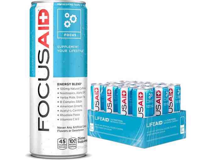 Meet your new go-to source for clean energy: FOCUSAID from LIFEAID Beverage Company. Is your body tired of crashing from all those energy drinks which get you hopped up with too much added caffeine and Taurine? LIFEAID has created a clean, natural alternative without all the pixie dust, junk or jitters—made to fit your healthy lifestyle. The Energy Blend in FOCUSAID contains key Nootropics which have been shown to improve focus, memory and overall brain function. Stay energized (with 100mg of natural caffeine from Green Tea and Yerba Mate) and on task with an ice-cold can of FOCUSAID—its lightly carbonated, refreshing Melon Maté taste is perfect for crunch time at work, school or home.