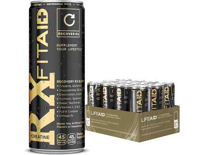 FITAID RX was born from a shared passion between LIFEAID and affiliates to provide a post-workout Recovery Blend for the fitness community, helping you train harder and recover clean. It contains all the same ingredients you know and love in FITAID plus 1,000mg of Creatine to build muscle during recovery and enhance overall performance. Nothing beats that refreshing, Sour Grape taste of an ice-cold can of FITAID RX immediately following your next WOD or intense training session!