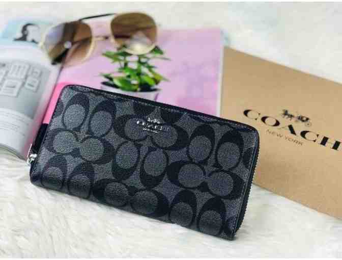 Authentic Coach's Outline Signature (F39670) Accordion Zip Around Wallet In Signature Canvas BLACK.