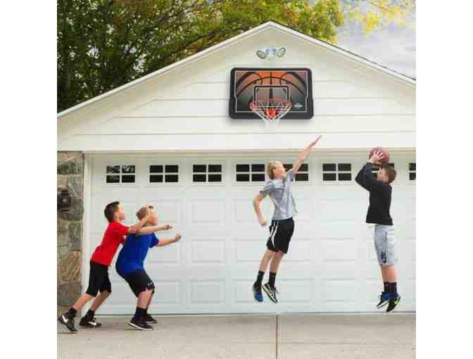 This backboard combo from Lifetime Products features a 44-inch Impact Backboard and a black Classic Rim. The Impact backboard is molded of high-density polyethylene and has UV-protected, fade-resistant graphics. The 18-inch rim is made of 5/8-inch solid steel with 1/2-inch steel braces and includes a heavy-duty nylon net.