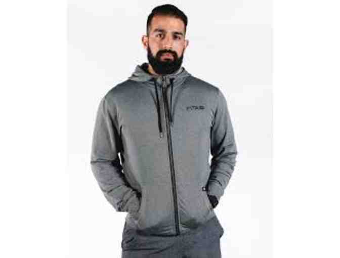 When cool weather comes along, you must zip it! Our FITAID zip-up hoodie is the perfect layering piece whether you're headed to the gym, market, great outdoors or just hanging around the house. Features comfy terry blend fabric with a durable front zipper, convenient dual pockets and a cozy hood. MEN'S SIZING. We suggest women order one size down.