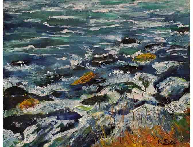 This oil on canvas painting is 16" x 20" and is unframed. It is signed by the artist, Marcella Sabo. Shipping and processing fees will be added to the winning bid.