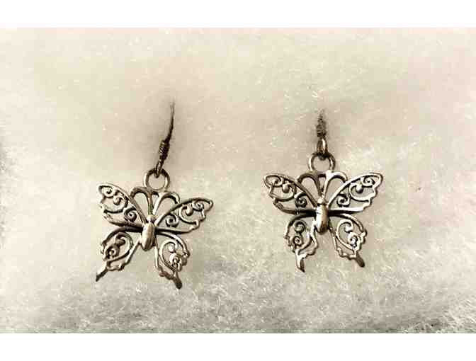 One (1) pair of sterling silver butterfly dangle earrings from Super Silver.