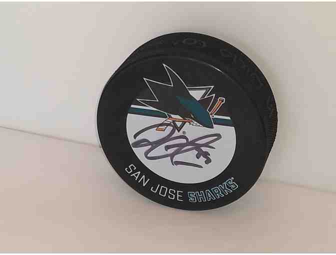 Player Logan Couture autographed hockey puck from the San Jose Sharks!